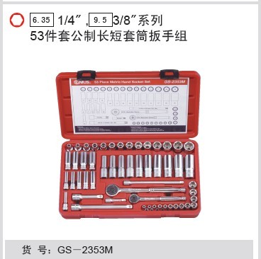 | 名称:53件套公制长短套筒扳手组 |  | | 编号:Pro200912917589 | | 型号:GS-2353M | | 价格:价格请咨询 | | 厂商:天赋工具(Genius Tools)-加拿大纯进口工具 | | 时间:2009-12-9 18:01:23 | 购买: | |  |  | |
