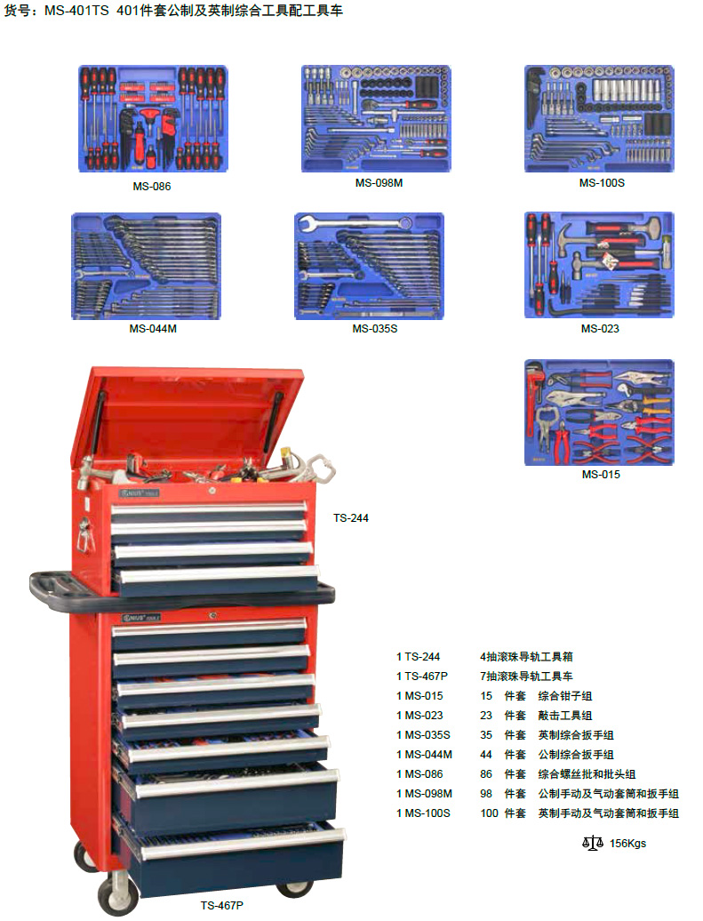 货号:MS-401TS 401件公制及英制综合工具配工具车
