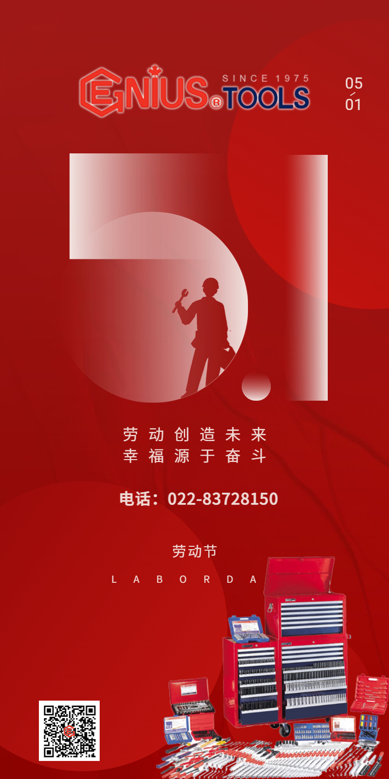 五一劳动节即将到来,为了让大家在节日期间能够更好地享受假期,天赋工具中国办事处按照国家法定假日安排放假五天,即 4 月 29 日至 5 月 3 日。在此期间,如有急事可以联系值班客服电话022-83728150,同时客户朋友仍可通过我们的官网www.geniustools.cn进行咨询下单,节后我们第一时间为您回复。